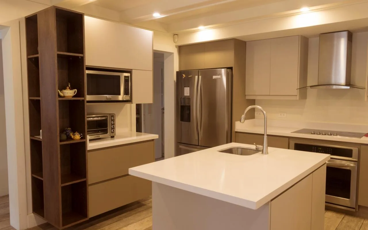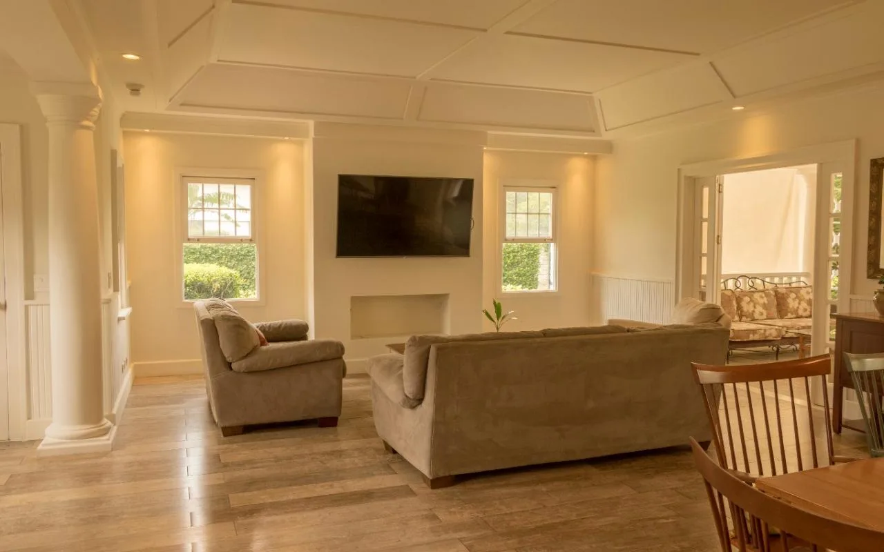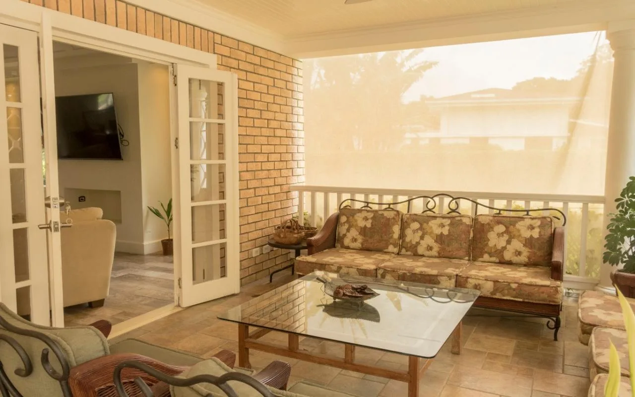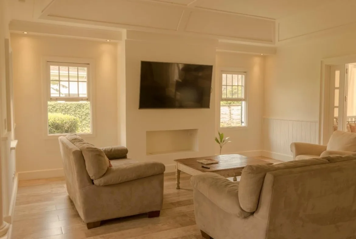 The social space has an open-concept with living, dining and integrated kitchen. This area is very luminous, it has high ceilings, and beautiful French windows and doors, and the latter directly connect to the terrace, pool area and garden, ideal for those who like the outdoors entertainment.