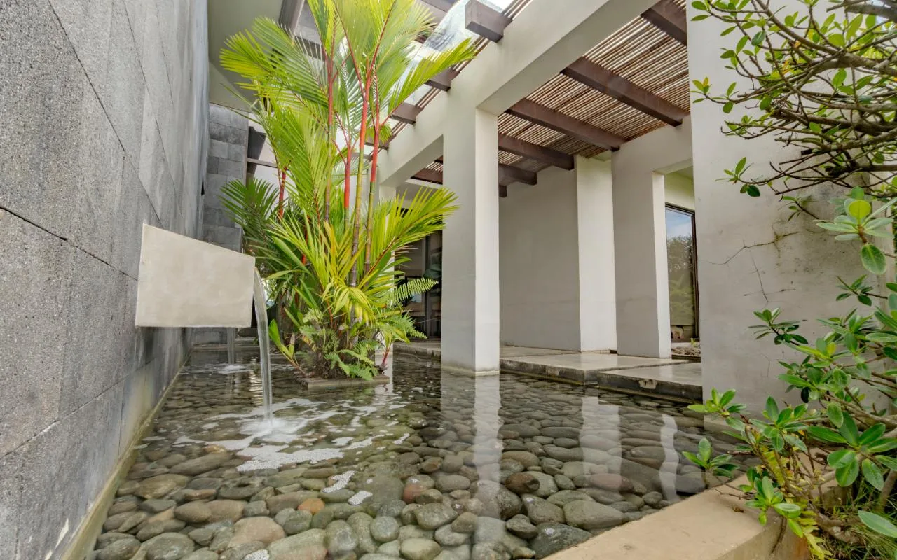 The architectural and design details enhance the unique character of this property. Solid wood columns and countertops add warmth and sophistication, while green natural stone cladding offers a unique and durable aesthetic. The lighting and landscaping of the garden have been carefully designed by a professional landscaper and include an automatic irrigation system for easy maintenance. From any point in the garden, the mountain views become a central element, enhancing the outdoor living experience. The property incorporates several features aimed at efficiency and sustainability. A water collection tank, water softener, UV and sediment filters ensure the entire house has access to superior-quality water. Additionally, a laundry chute connecting the closets to the laundry room adds a modern functionality that simplifies daily tasks.