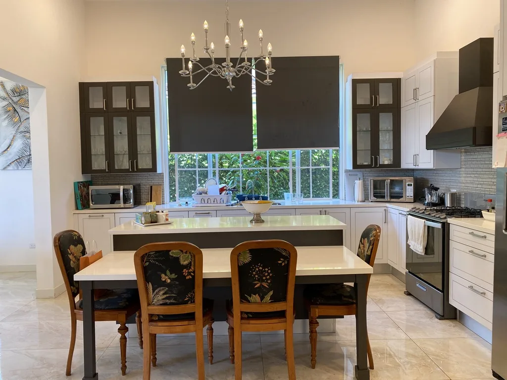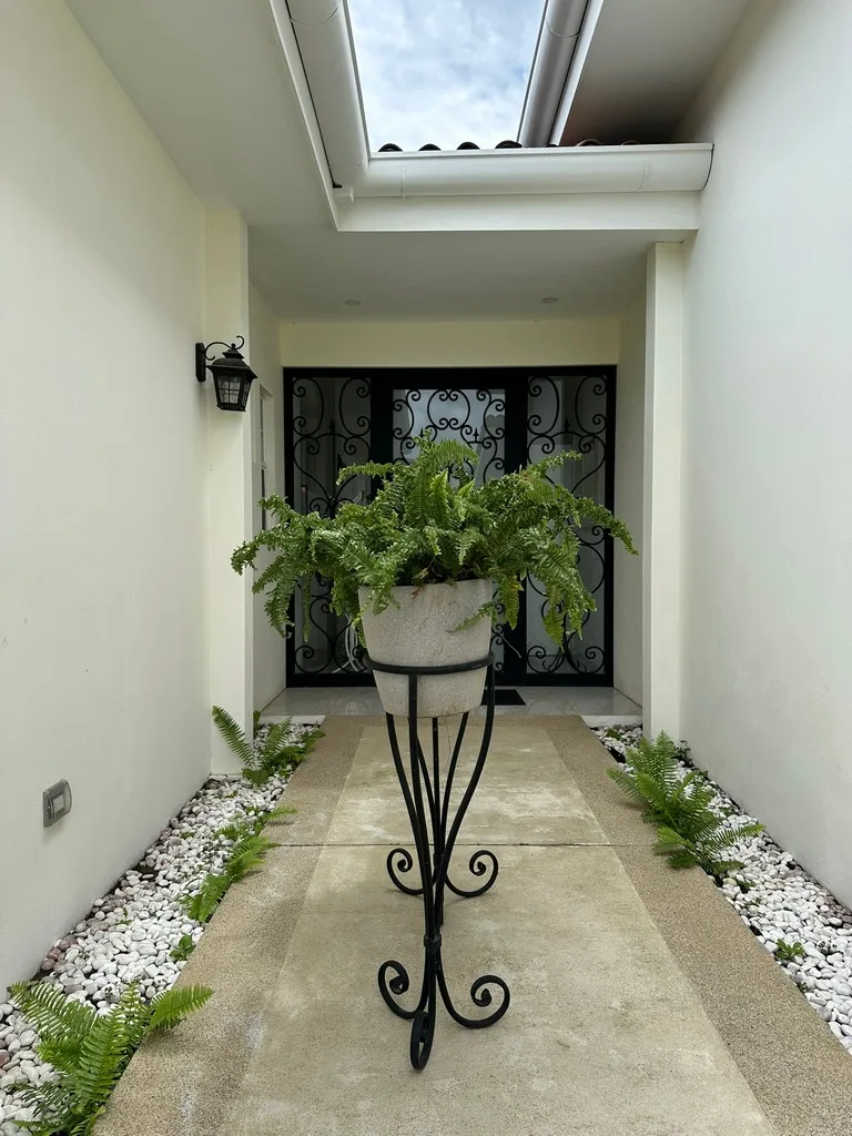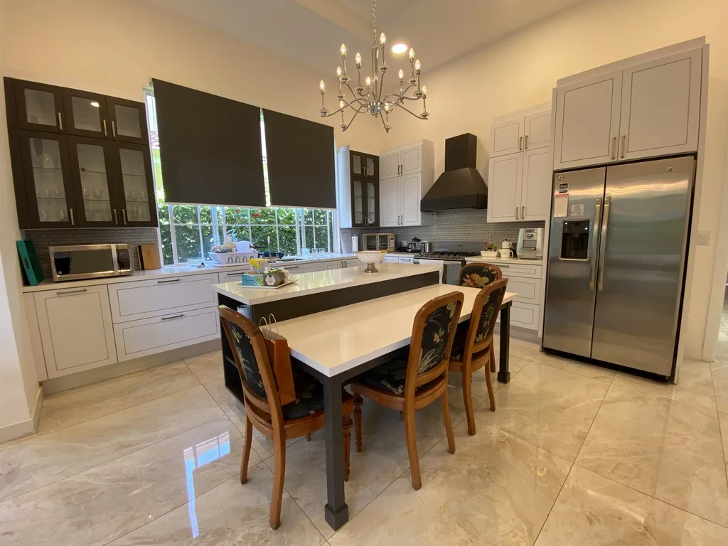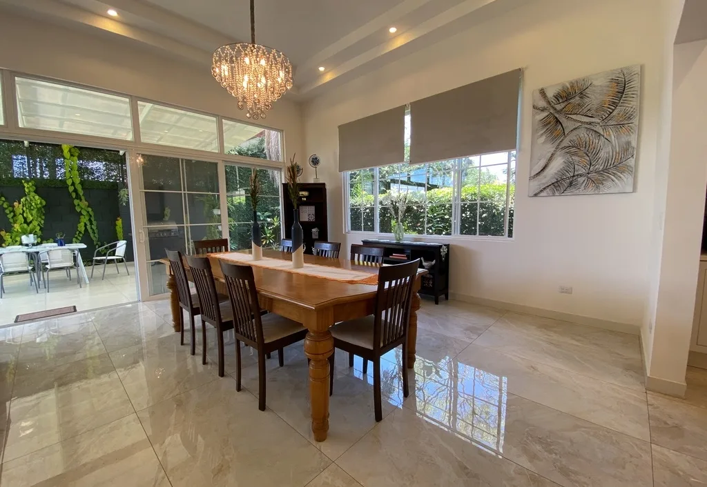 The living and dining spaces are cleverly designed to flow effortlessly into an outdoor terrace and garden, enhancing the feeling of openness and integrating indoor and outdoor living. This arrangement is perfect for both unwinding and entertaining, set amidst the verdant scenery that defines Valle del Sol.
