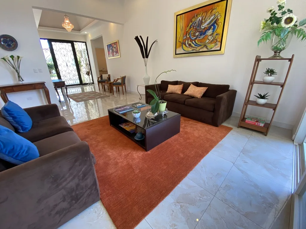 In the exclusive enclave of Valle del Sol, one of the most sought after residential areas in the Central Valley and widely renowned for its professional 18 hole golf course and tennis facilities; a charming one-story American-style house is on the market. This home boasts a European kitchen that merges modern design with practicality, offering a sophisticated space for cooking aficionados. It features three generously sized bedrooms, each accompanied by a private bathroom, promoting both privacy and ease for residents.
